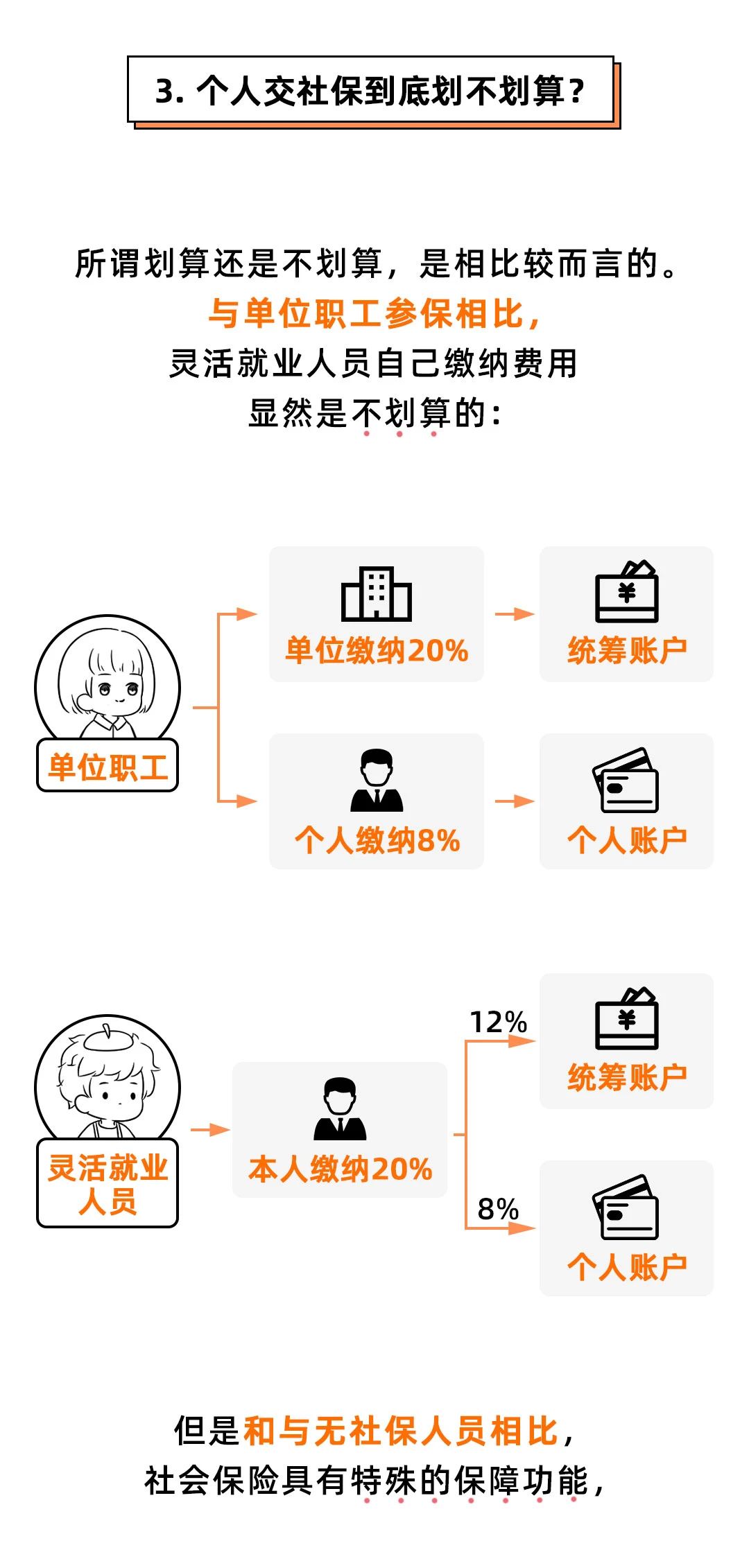 2017年,大連市城鎮(zhèn)非私營(yíng)單位在崗職工年平均工資為81884元,由于社保繳費(fèi)基數(shù)的下限是社平工資的60%,即每月為4094元。在大連,城鎮(zhèn)職工個(gè)人養(yǎng)老保險(xiǎn)、失業(yè)保險(xiǎn)、醫(yī)療保險(xiǎn)的繳費(fèi)比例分別是8%、0.5%和2%,因此黃安寧個(gè)人部分需繳納430元,同時(shí)她還要繳納單位部分18%的養(yǎng)老保險(xiǎn)、0.5%的失業(yè)保險(xiǎn)、0.5%的工傷保險(xiǎn)和1.2%的生育保險(xiǎn)、8%醫(yī)療保險(xiǎn),共計(jì)1155元,每月通過(guò)中介共繳納城鎮(zhèn)職工社保費(fèi)1585元。而當(dāng)?shù)仂`活就業(yè)人員每月則需繳納社保費(fèi)1064元(包含20%的養(yǎng)老保險(xiǎn)和6%的醫(yī)療保險(xiǎn)),相當(dāng)于掛靠后每月多繳521元,而兩者領(lǐng)取的養(yǎng)老金數(shù)額相當(dāng)。